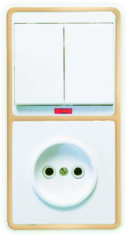 —Блок БКВР-213 Бэлла (2-кл. выкл. с инд. + розетка) зол. Кунцево 5830